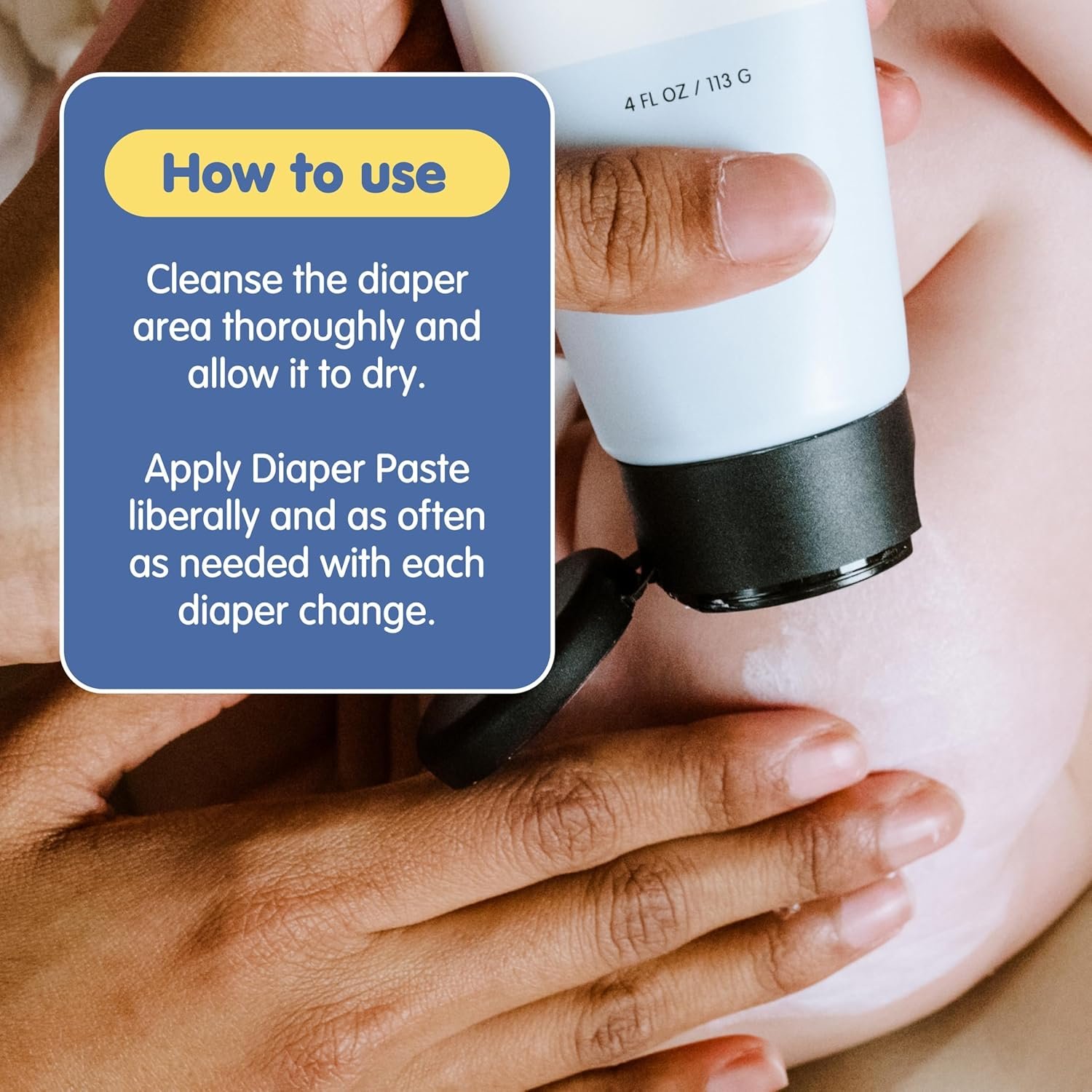 FOR SENSITIVE SKIN: Sweet Cheeks Diaper Paste is a smooth and gentle formula designed to protect and soothe your baby’s skin from irritation, leaving it soft and rash-free.
