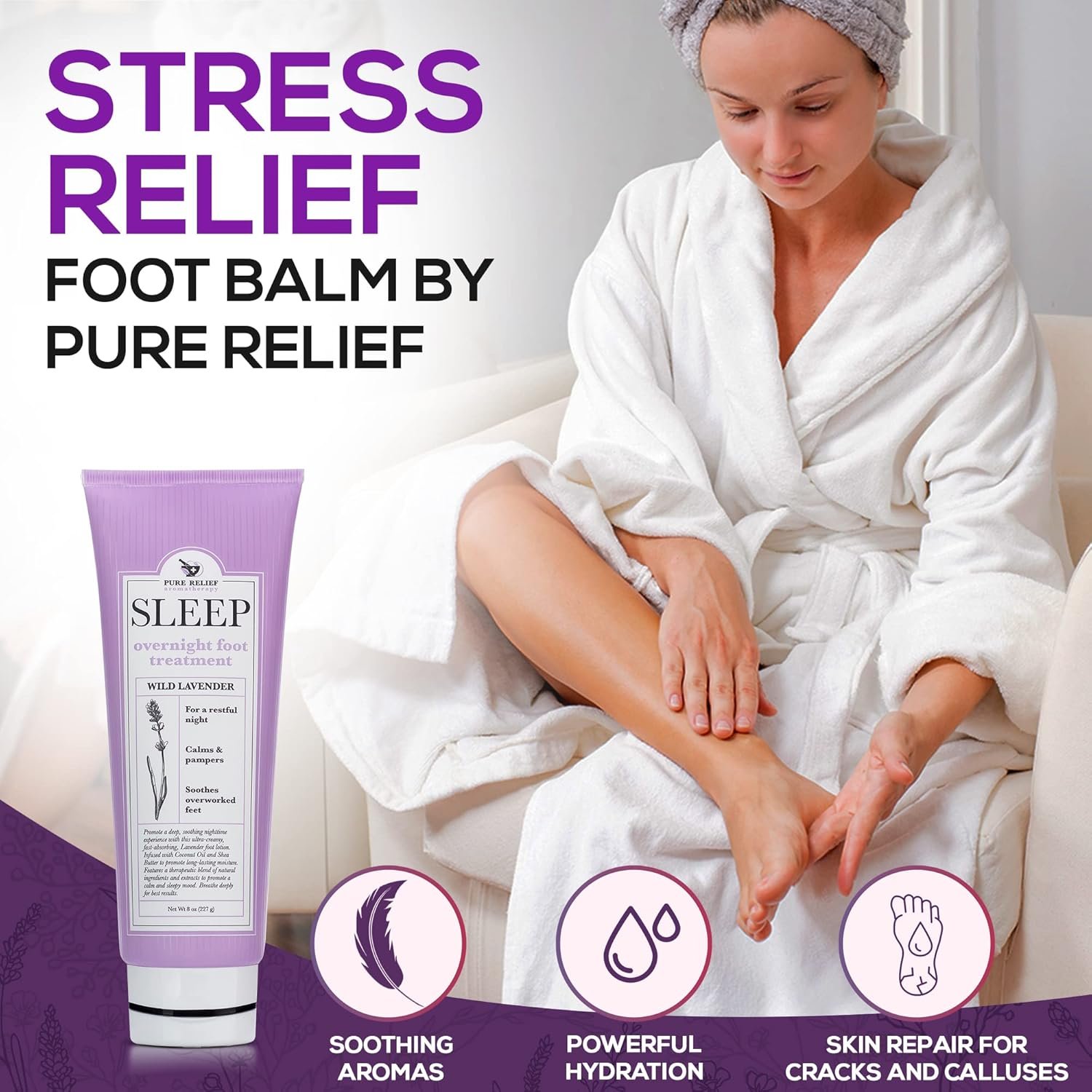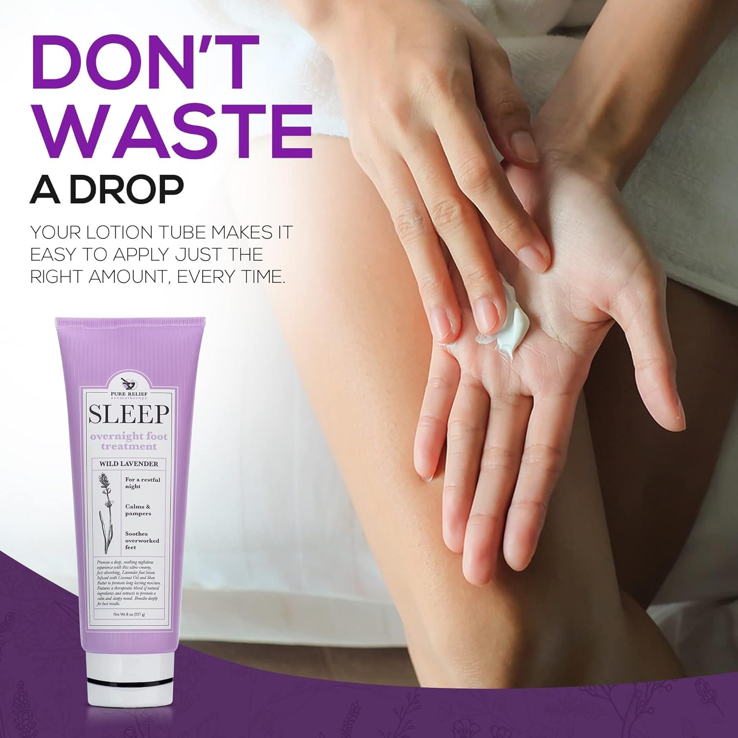 Moisturize and Close Your Eyes – Give your feet a soothing boost of moisture, and unwind with the scent of lavender. Your Pure Relief foot moisturizer for dry feet calms both your feet and your mind.