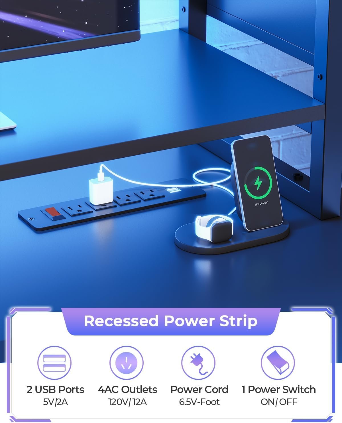 【Secure High-Capacity Charging Station】- The computer desk is equipped with four power sockets and two USB ports, meeting the power supply demands of multiple devices. It also features a power switch key for one-touch power-off, ensuring safe electricity usage and improving energy efficiency.
