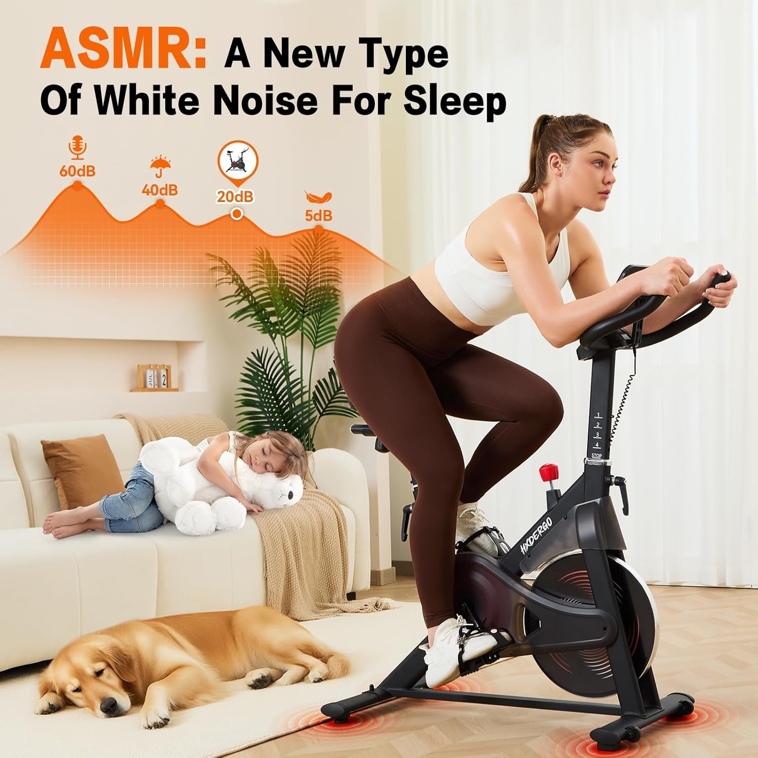ULTRA QUIET RIDE UNDER 20DB: This indoor bike uses a belt drive system for ultra-smooth and silent cycling under 20dB. Ideal for early risers or night workouts without disturbing kids, neighbors, or roommates.