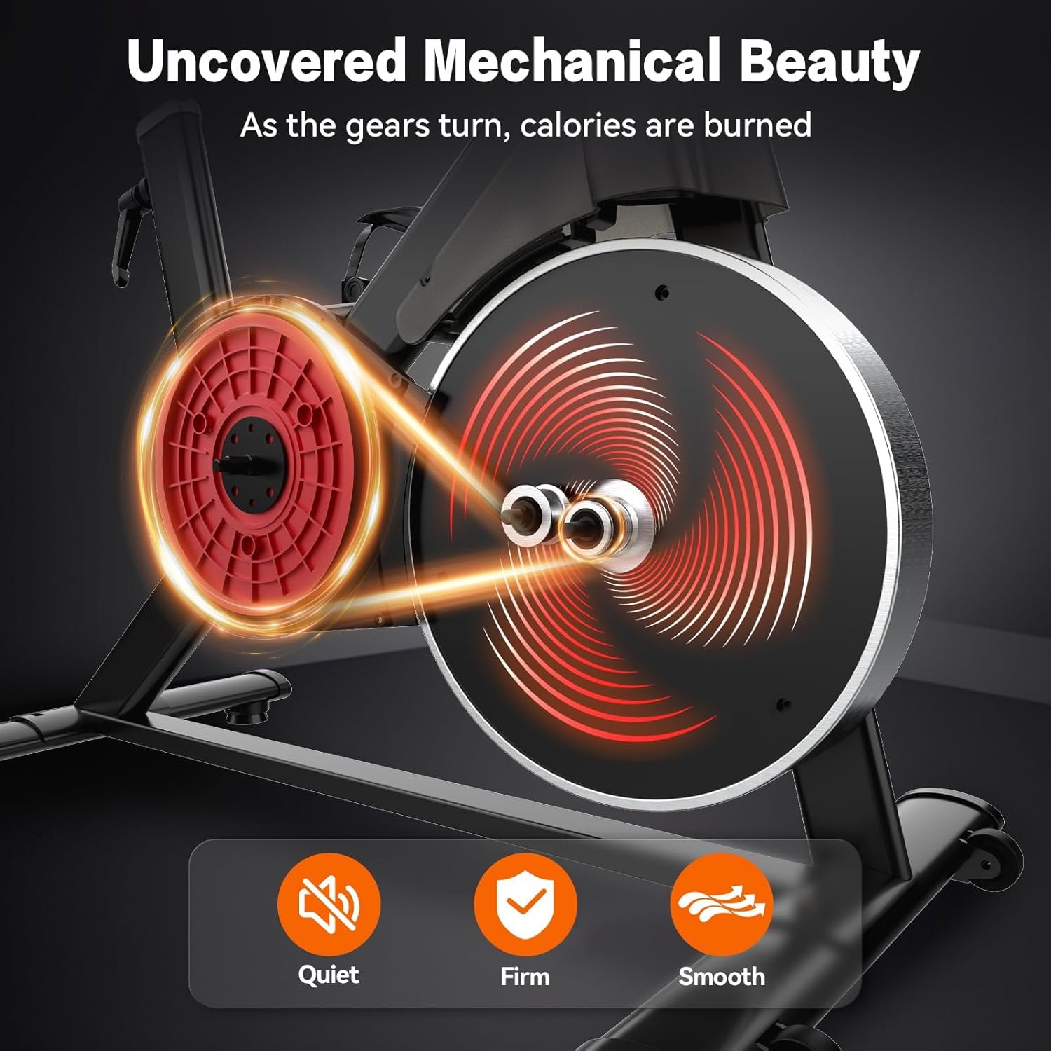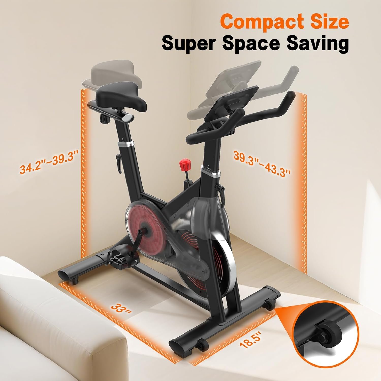 STABLE FRAME, BUILT TO LAST: Crafted with a reinforced triangular steel frame and thickened tubing, this stationary bike ensures wobble-free, safe workouts even during intense cycling. Supports riders up to 330lbs.