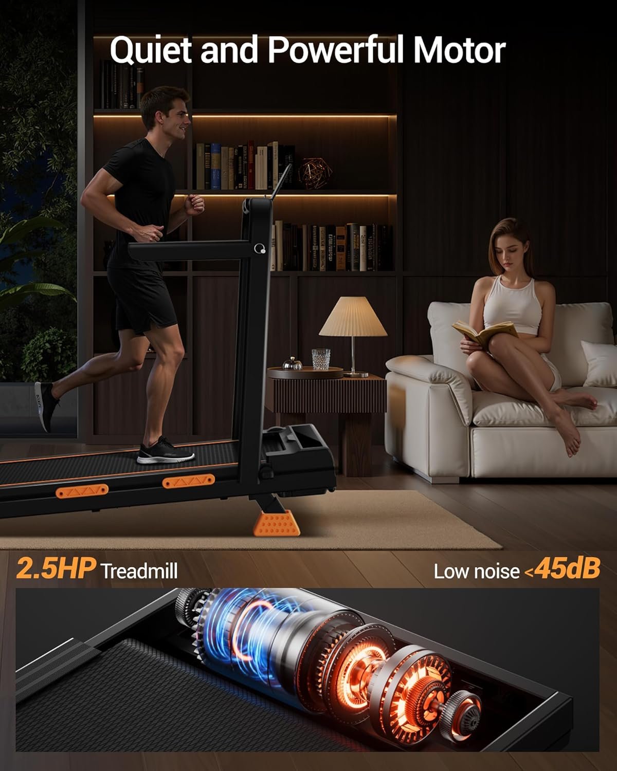 Powerful and Quiet Motor: Powered by a high-performance motor with 67% more power, it delivers consistent output even under heavy use while keeping noise under 45 dB—ideal for home workouts..The LED display screen tracks time, speed, distance and calories burned in real time.