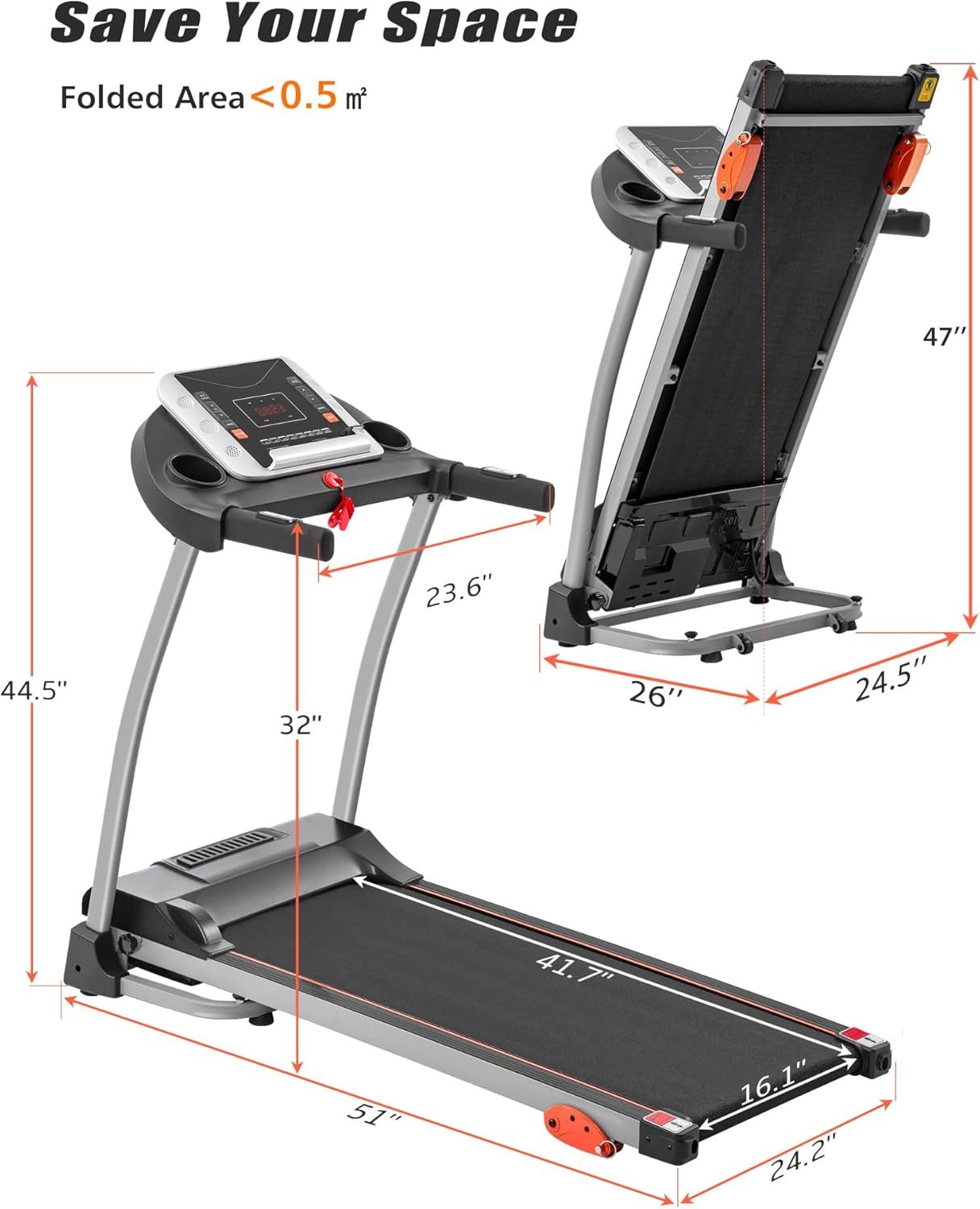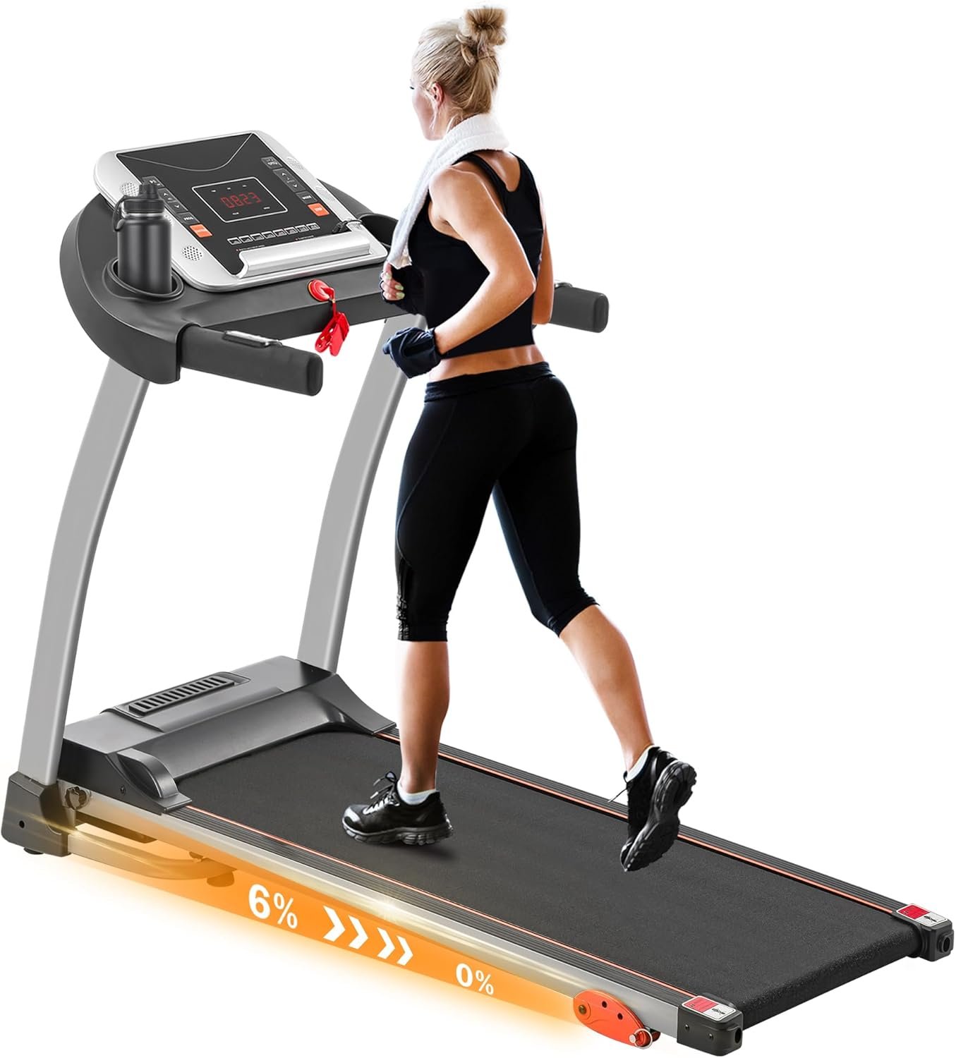 【Foldable Running Treadmill with 6% Manual Incline】The treadmill offers different intensity levels, allowing you to burn more calories as you progress from beginner to advanced. The 6% manual incline feature helps you burn up to 60% more calories