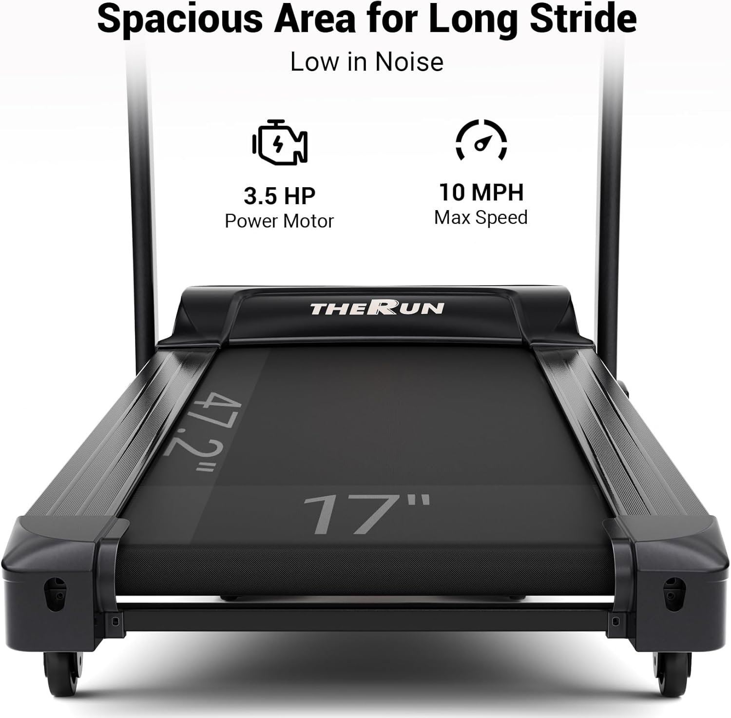 Quiet Dual Motor Bear 300 lbs Weight: THERUN treadmills for home features strong alloy steel frame and components to bear about 300 lbs, ready for for marathoners, sprinters, long distances runner and daily race trainer, 3.5 HP motors run the belt and power the incline easily, the noise may be ignored when running indoors