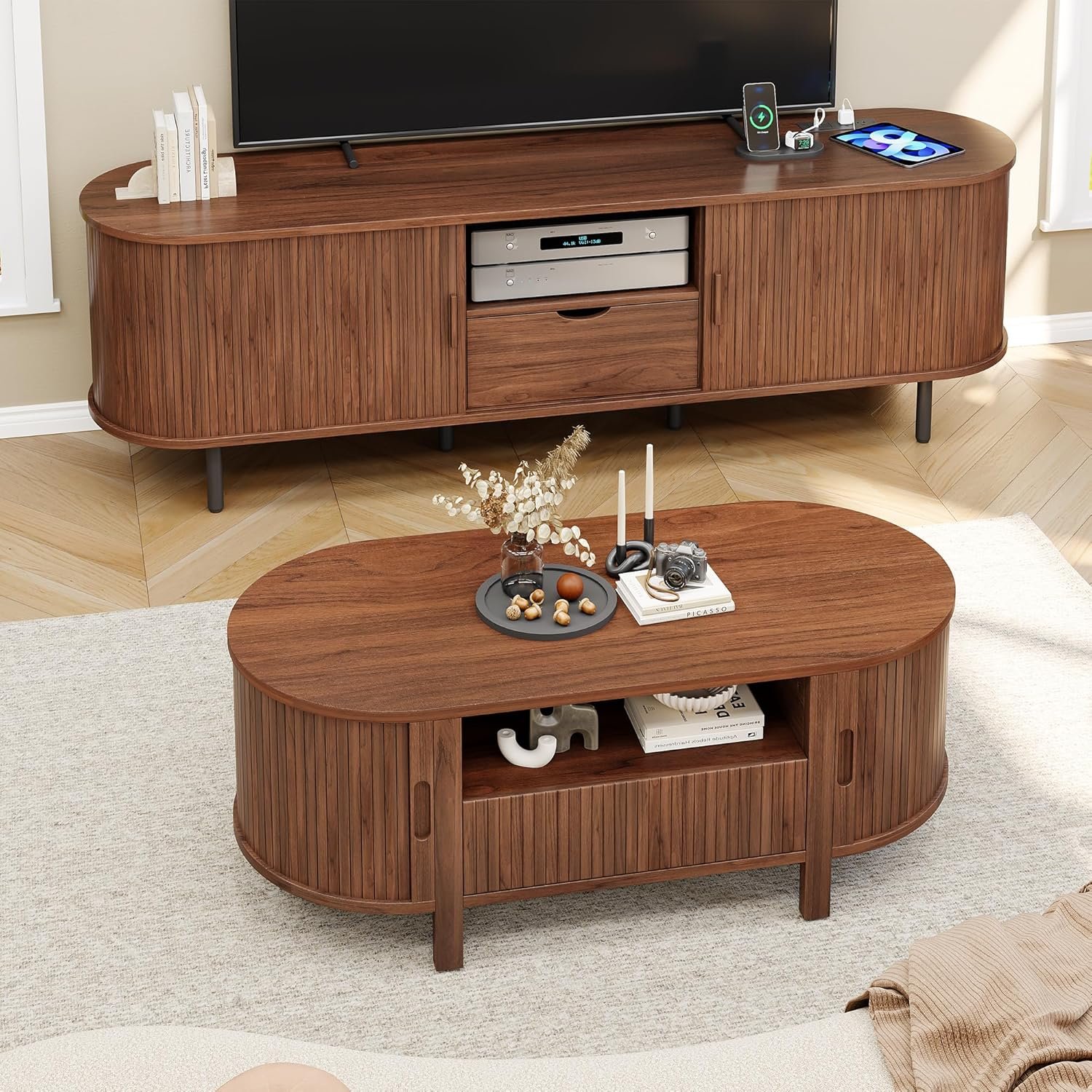 Be the first to review “47 Inch Oval Coffee Table, Fluted Coffee Tables with Storage, Mid-Century Modern Living Room Tables, Center Table with Sliding Door and Wood Handle for Living Room, Walnut”