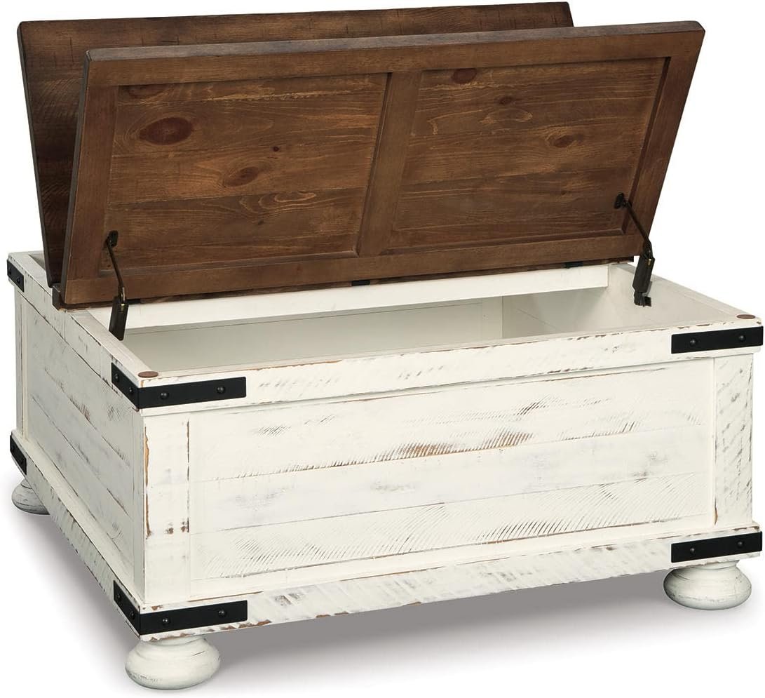 Signature Design by Ashley Wystfield Farmhouse Square Storage Coffee Table with Hinged Lift Top, Distressed White
