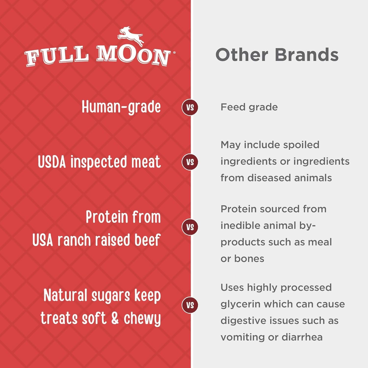 U.S.-GROWN BEEF: Full Moon treats are proudly made in the United States using regionally sourced ingredients, including USDA approved beef raised on family ranches.