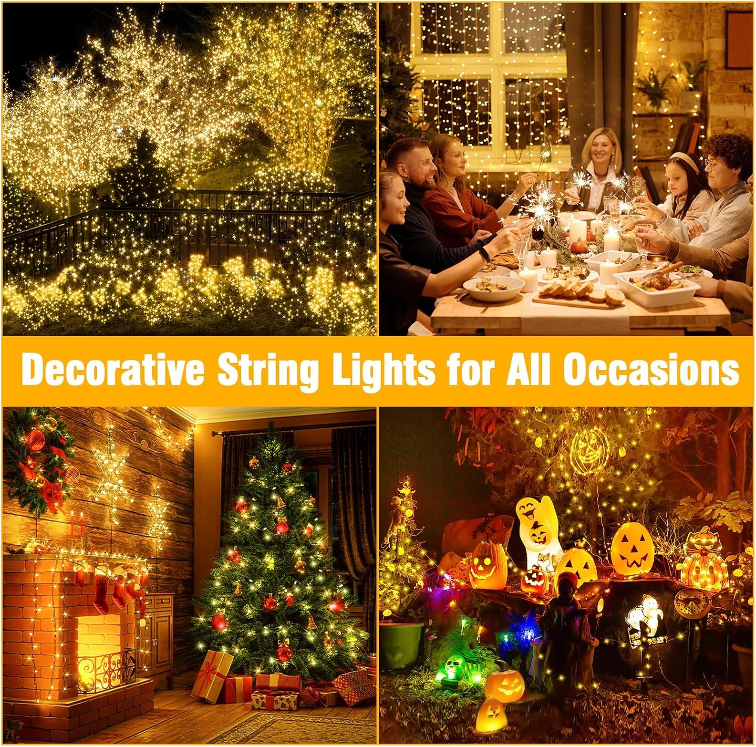 ✅【Waterproof Versatile LED Lights for Every Occasion】 Featuring 8 lighting modes and soft, gentle illumination, these string lights are perfect for bedrooms, kids’ rooms, Christmas decorations, or simply adding a cozy, magical vibe to your everyday life. Designed with fully sealed LED bulbs and anti-freeze coating, these outside lights perform reliably in rain and snow. Note: Please protect the power plug from water.