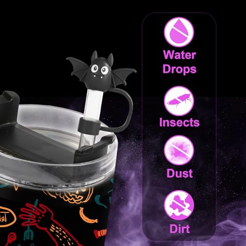 5pcs Halloween Straw Cover Cap for Stanley Cup 30/40oz, Spooky Silicone Straw Topper Bats Pumpkin Straw Tip Lid for 10mm Straws Tumbler Accessories Halloween Gifts Party Favors
