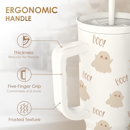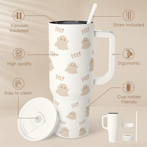 Boo Tumbler with Handle and Straw 40oz – Stainless Sleel Slider Tumbler Travel Coffee Mug for Women – Gift Idea for Fall Autumn Halloween Christmas