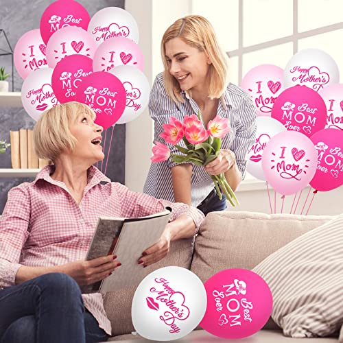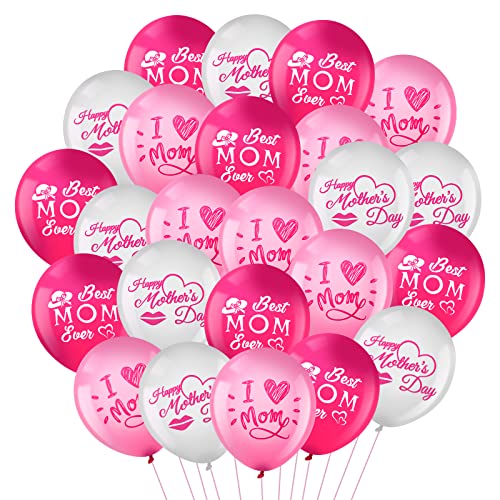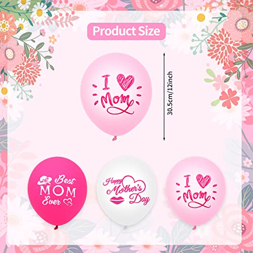 24 Pieces 12 Inch Latex Happy Mother’s Day Balloons Decorations – Best Mum Ever I Love You Mum Heart Printed Balloons Set Gift Party Supplies