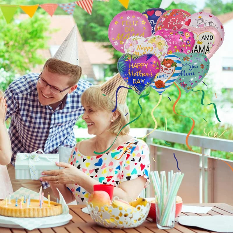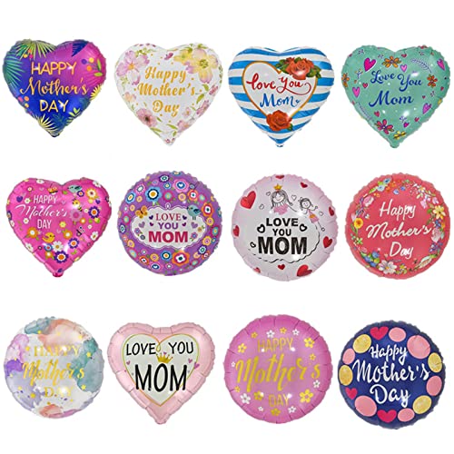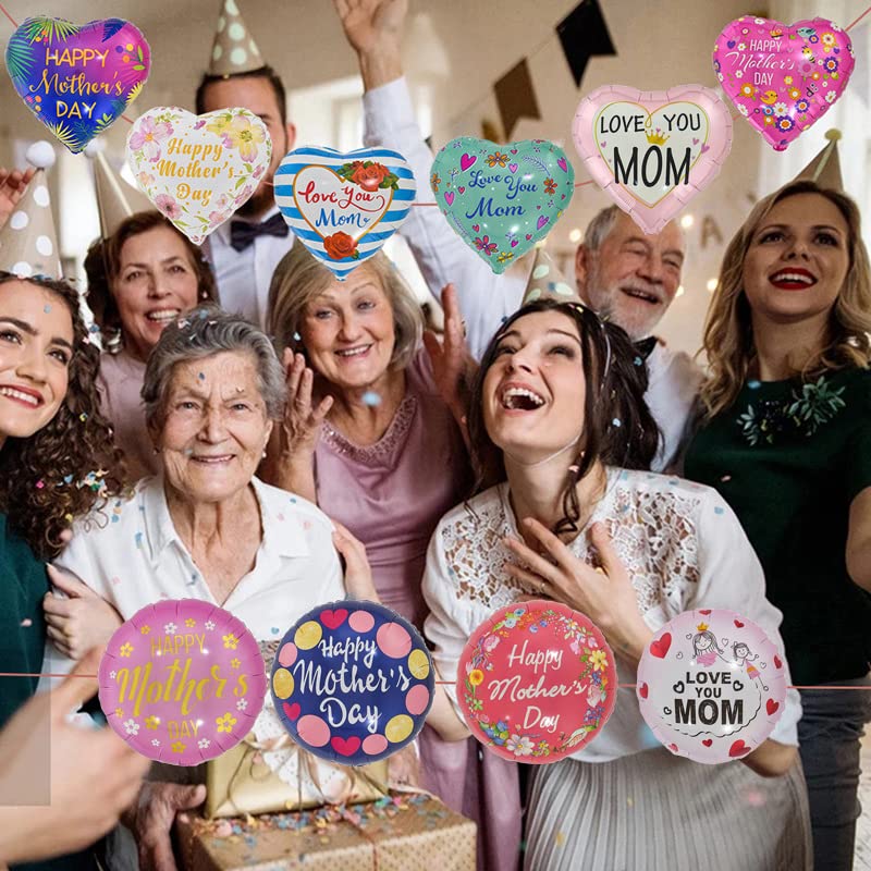 Happy Mother’s Day Balloons 12Pcs 18inch Love You Mom Balloons for Mother’s Day Birthday Party Decorations