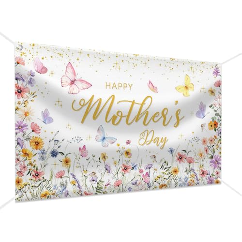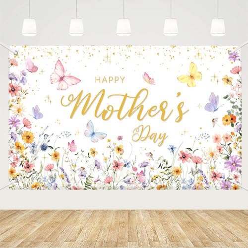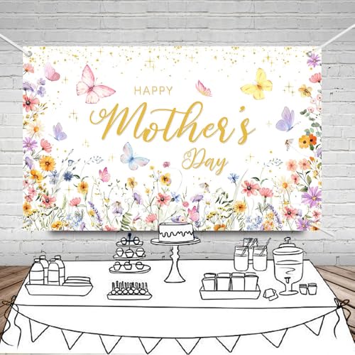MEHOFOND Wildflower Happy Mothers Day Banner, Floral Mothers Day Backdrop Party Decorations Backdrop Mother’s Day Party Decor Cake Smash Photo Booth Props Supplies