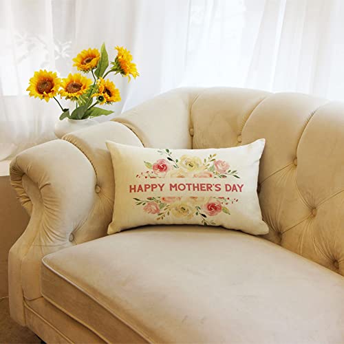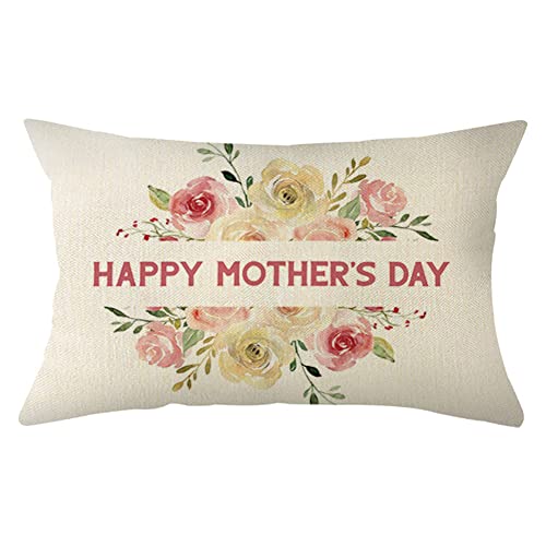 Ogiselestyle Happy Mother’s Day Floral Wreath Throw Pillow Case,12 X 20 Inch Mothers Gift Cushion Cover Decoration for Home