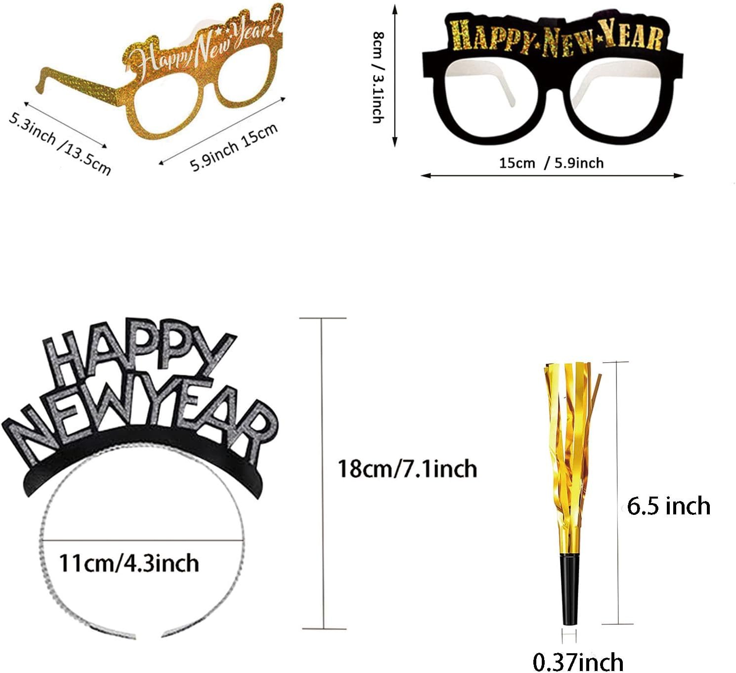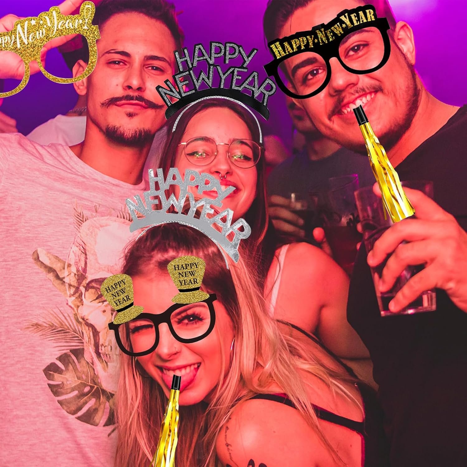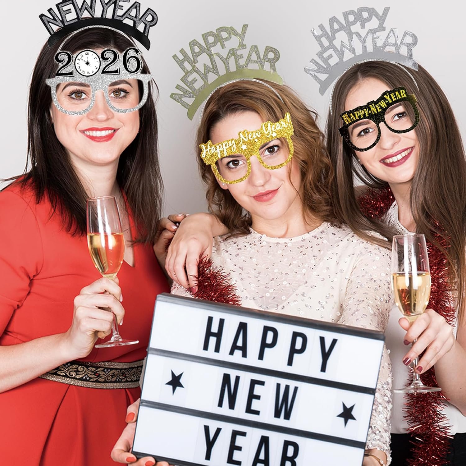 39 Pieces New Years Eve Party Supplies 2026,Happy New Year Headband Tiara, New Year Glasses 2026