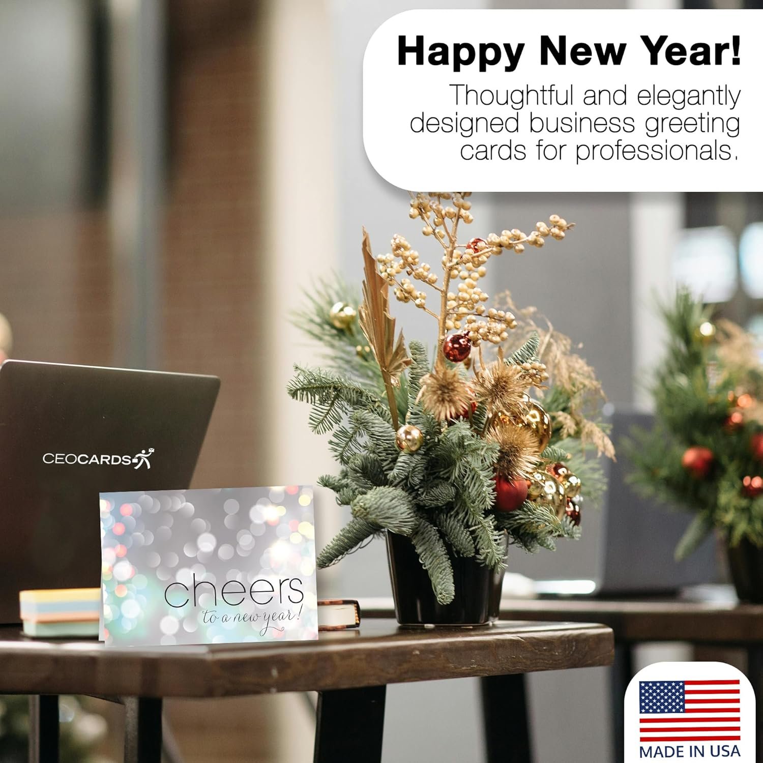 MADE IN USA: Our bulk new year celebration seasonal greeting card sets include all original designs and do not include glitter, embossing or foil stamping. All of our greeting cards are made in North Carolina, USA!