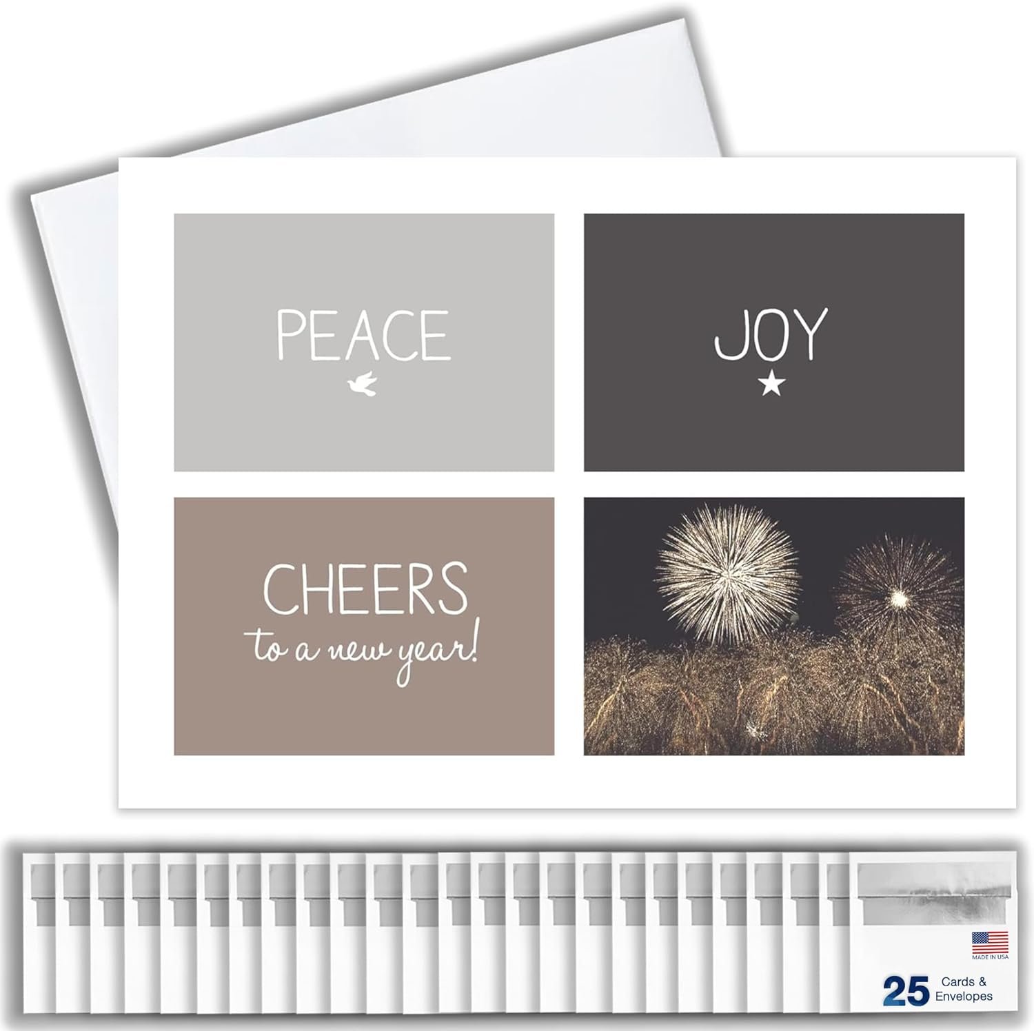 New Years Cards for Business & Family (Peace Joy & Cheers) Bulk Greeting Card Set Pack of 25 Happy New Year Cards with Envelopes for 2026 (5×7 inch A7) Great for Office, Work Employees & Clients N1502