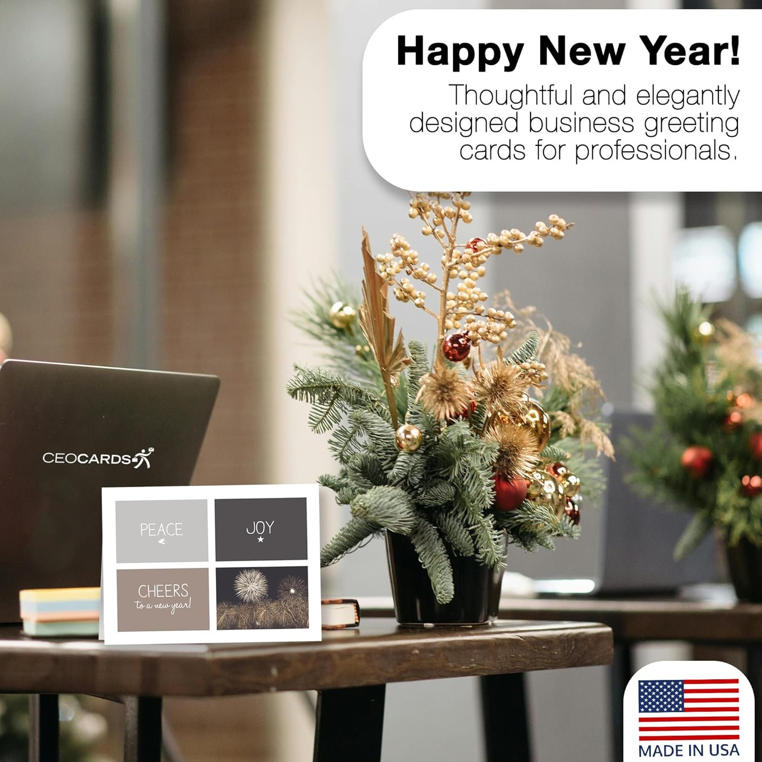 MADE IN USA: Our bulk new year celebration seasonal greeting card sets include all original designs and do not include glitter, embossing or foil stamping. All of our greeting cards are made in North Carolina, USA!