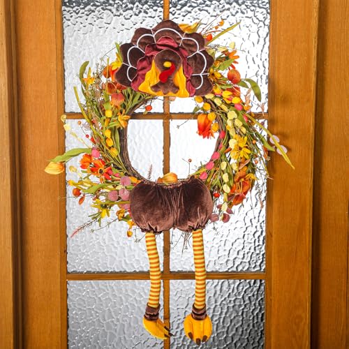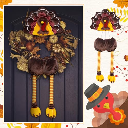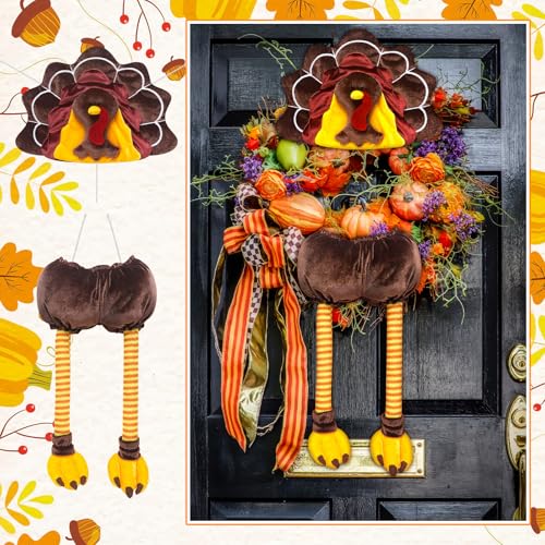 Turkey Thanksgiving Head Tail Legs Plush Wreath Embellishment Kit 2 Pieces for Fall Events Thanksgiving Party Family Gatherings Holiday Decorations 27 Inches High