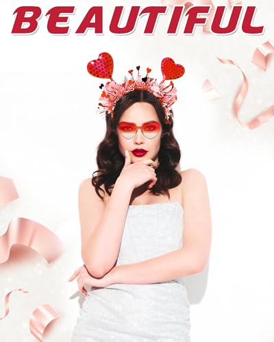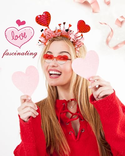 Dolkoic Valentines Heart Headband and Heart Sunglasses for Valentine’s Day Halloween Party Accessoires